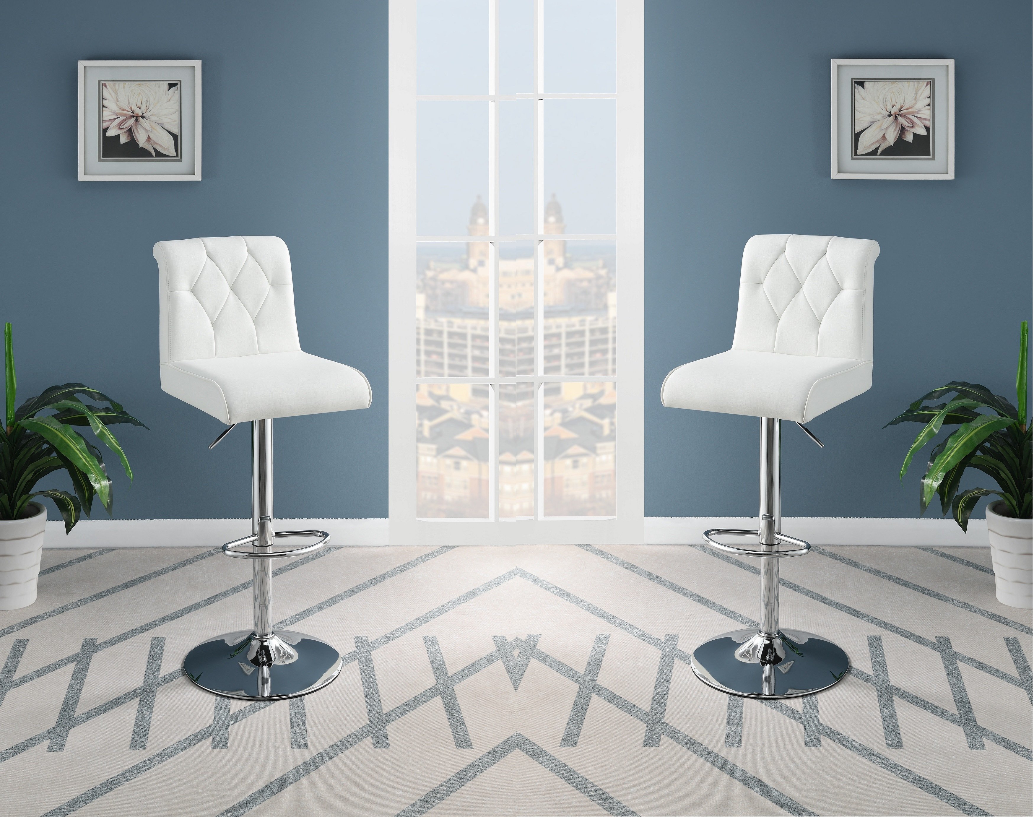 Adjustable Bar stool Gas lift Chair White Faux Leather Tufted Chrome Base Modern Set of 2 Chairs Dining Kitchen