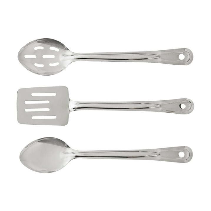 • Includes one 8.5' sauté pan, one 1-qt saucepan, one 2-qt saucepan, one 4-qt Dutch oven, 3 vented glass lids, 1 solid serving spoon, 1 slotted serving spoon, and 1 slotted spatula