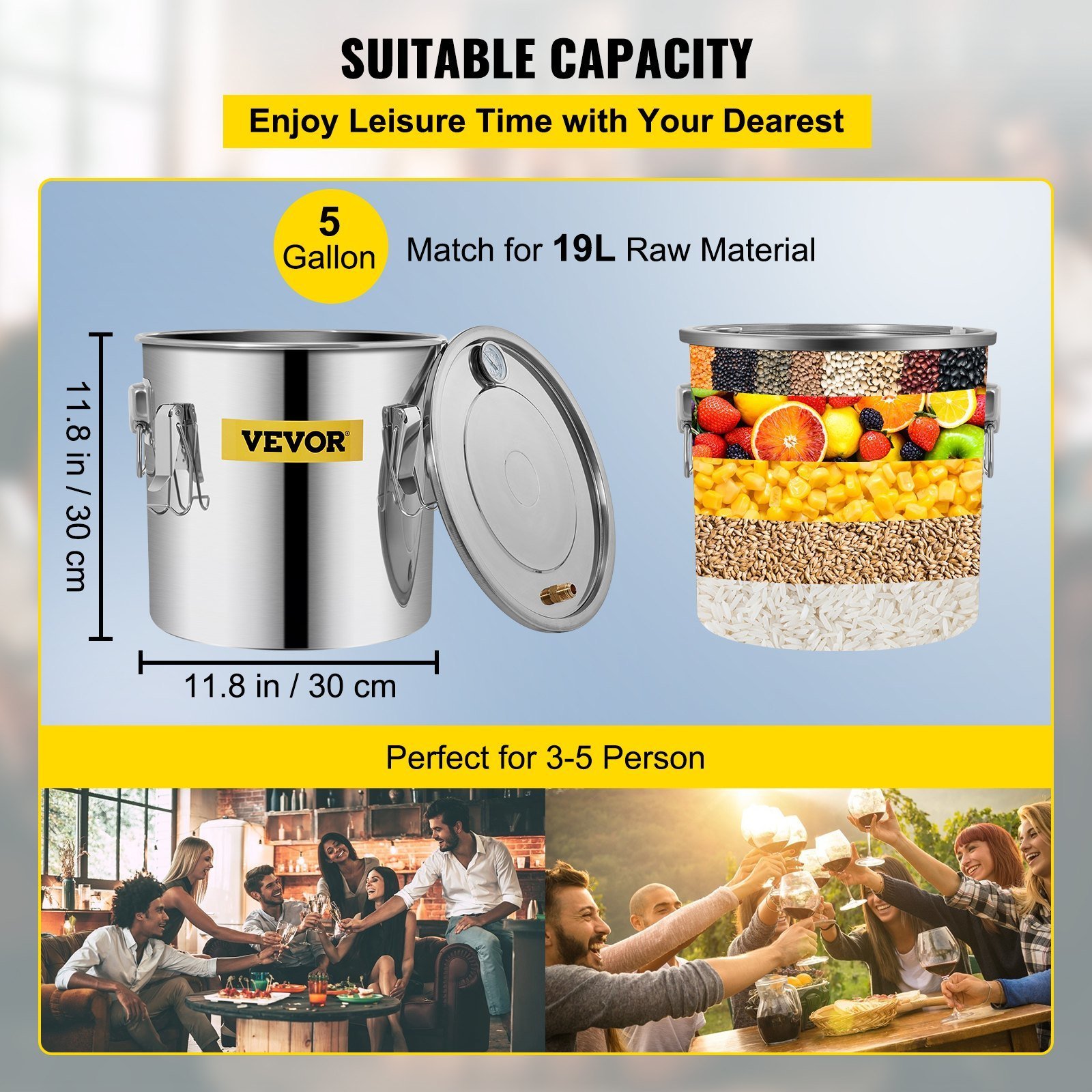 The capacity of alcohol stills is 5 gal, which can match up with 19 liters raw material. Boiler barrel: 11. 8" x 11. 8" (30 x 30 cm). Condenser: 7.9" x 4.3" (20 x 11 cm). Thumper: 7" x 4" (18 x 10 cm), suitable for you to enjoy leisure time with your families or friends.